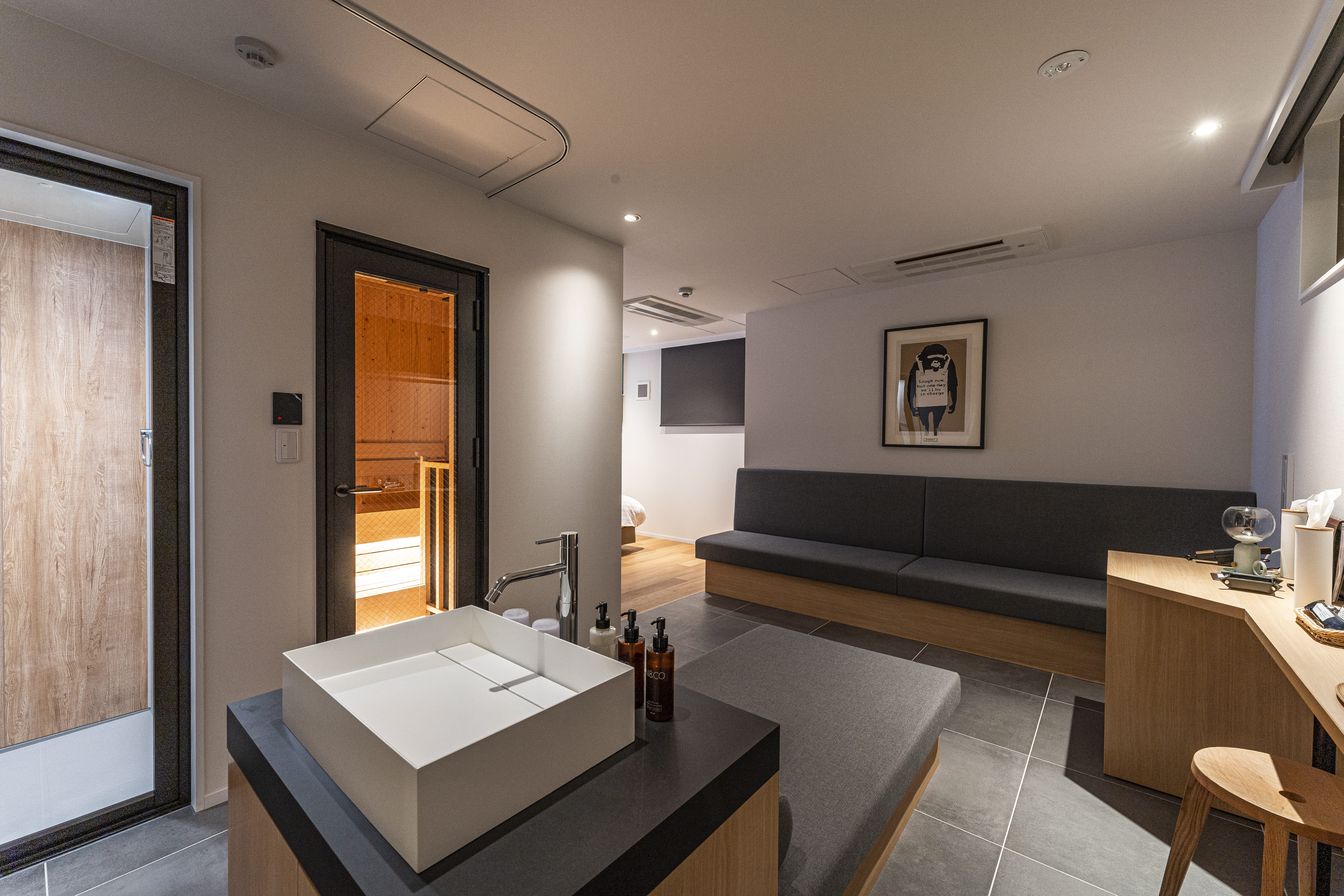 9ホテル天神 の1階プライベートサウナは、思う存分ゆったりとくつろげる空間となっております。