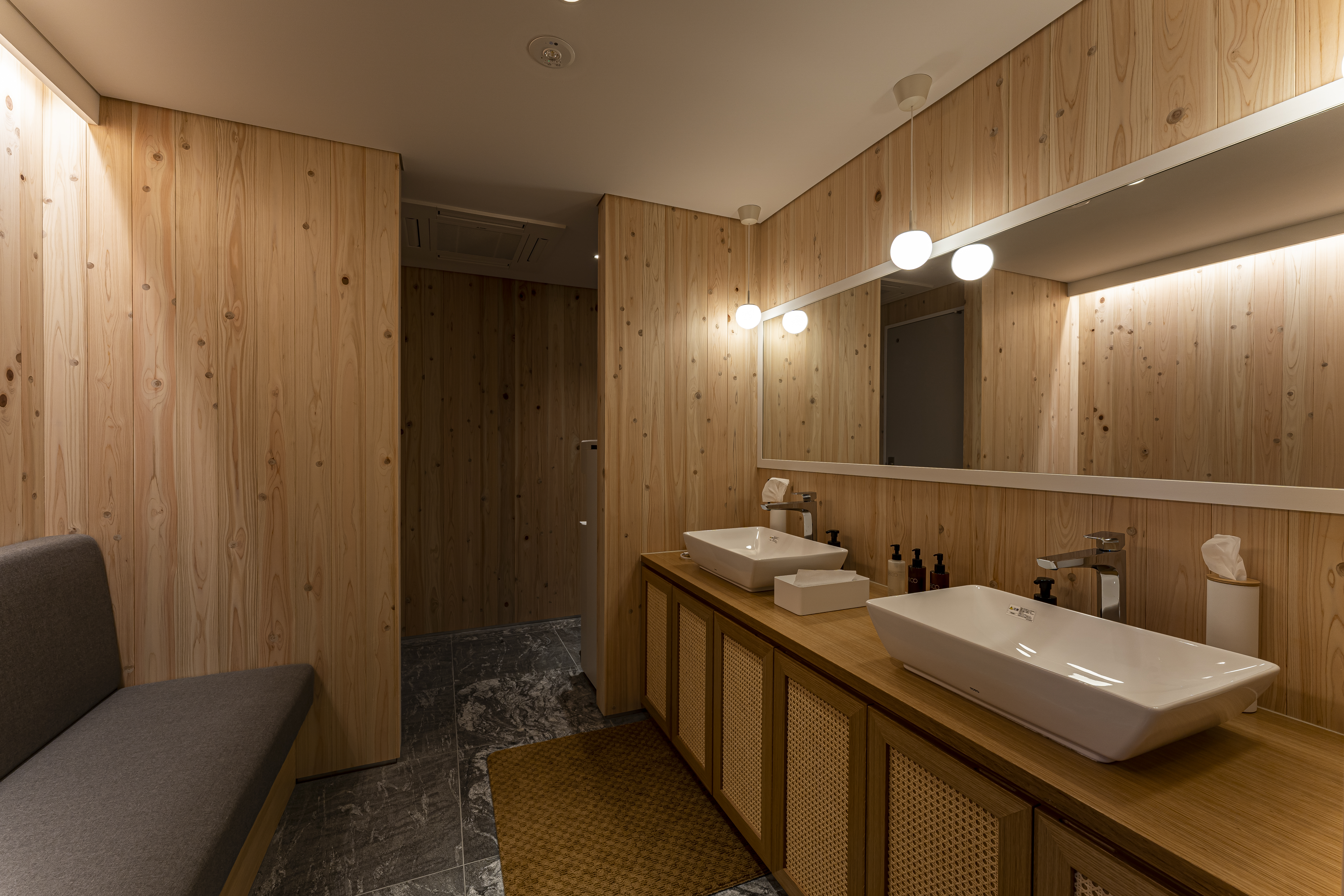 脱衣スペースには、ウォーターサーバーを完備。サウナ女子にも嬉しい、クレンジング、化粧水、乳液もご用意しております。